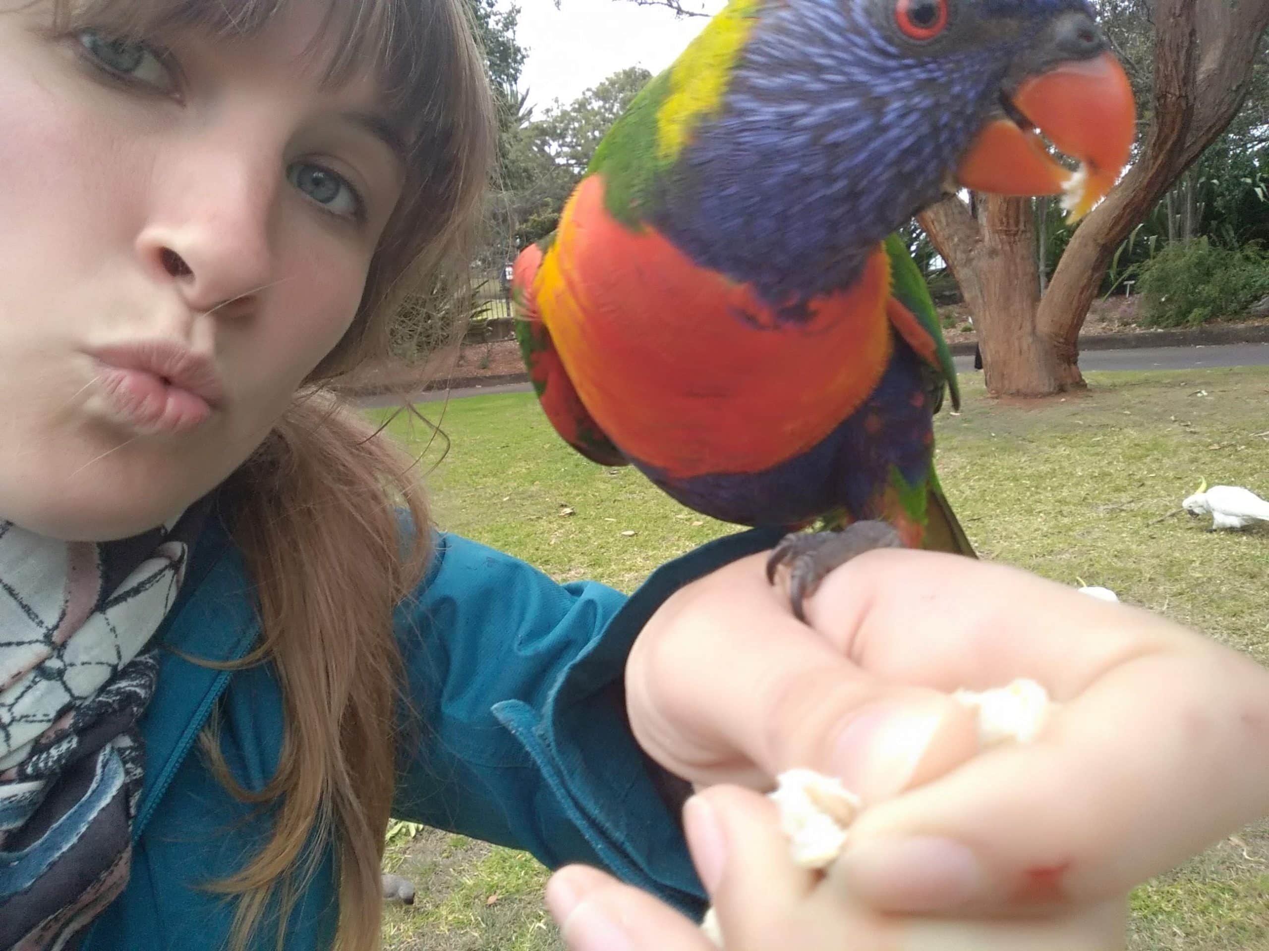 El primer loro que pude ver en Australia fue el Rainbow, conocido como Loris Arcoíris, así como el primero con el que pude interactuar.